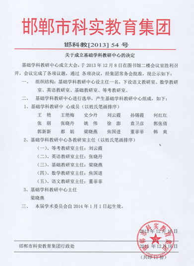 我?;A(chǔ)學(xué)科委員會成立2013年12月16日,其前身基礎(chǔ)學(xué)科教研中心。由教研室主任組成、設(shè)主任一名