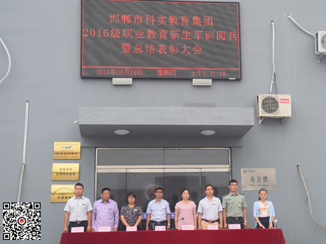 2016年8月18日,在嘹亮的軍歌聲中,冀南新區(qū)校區(qū)2016級職業(yè)教育新生軍訓(xùn)閱兵暨總結(jié)表彰大會在操場隆重舉行,集團(tuán)校長張璽、副校長梁曉燕、市場運(yùn)營中心校長劉金芳、行政管理中心常務(wù)副校長陳繼軍、冀南新區(qū)校區(qū)副校長王建福、校長助理趙亮亮、軍訓(xùn)教導(dǎo)大隊隊長李延亮和教官們及全校師生參加大會。