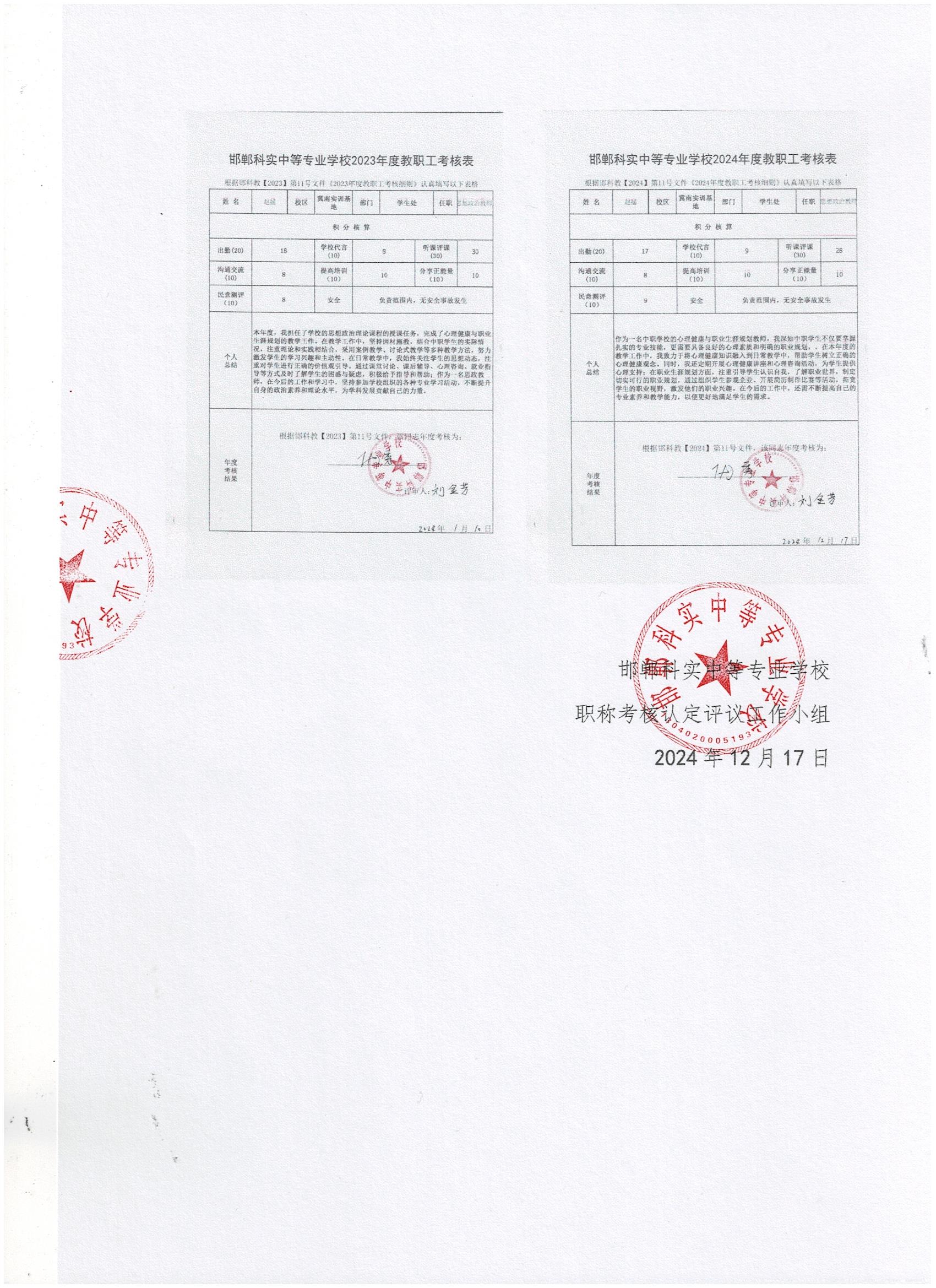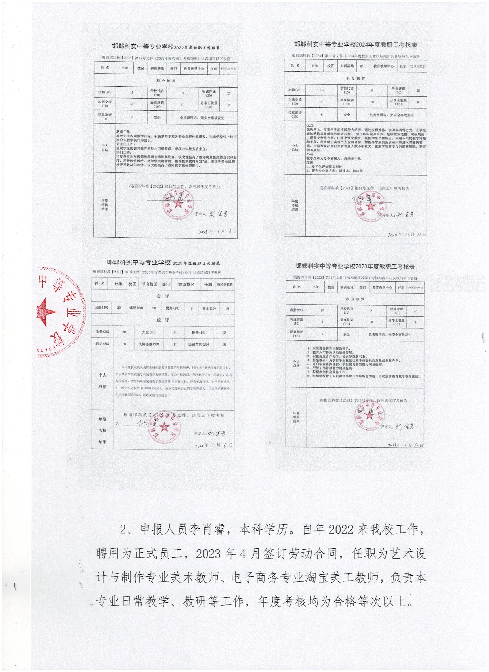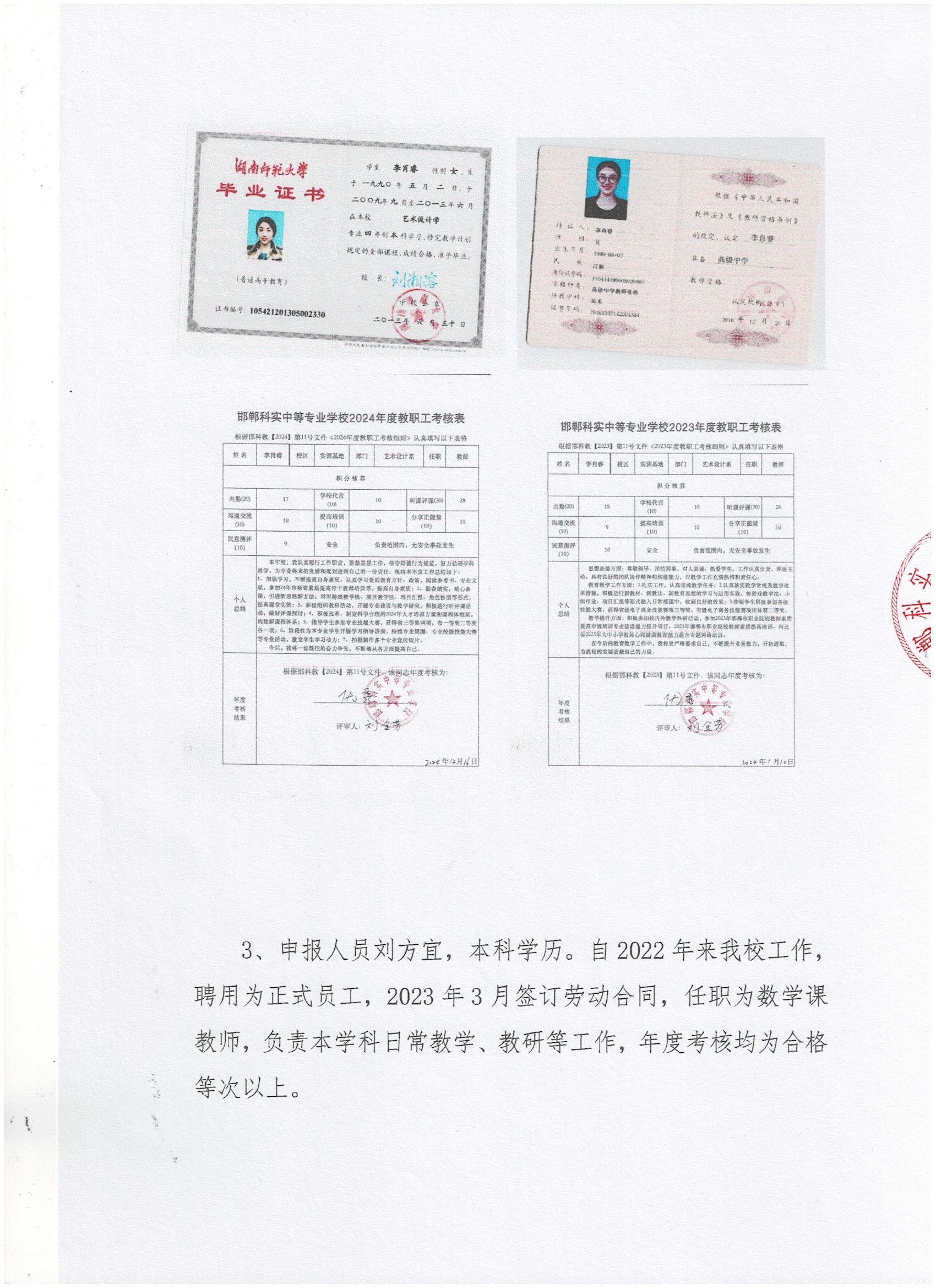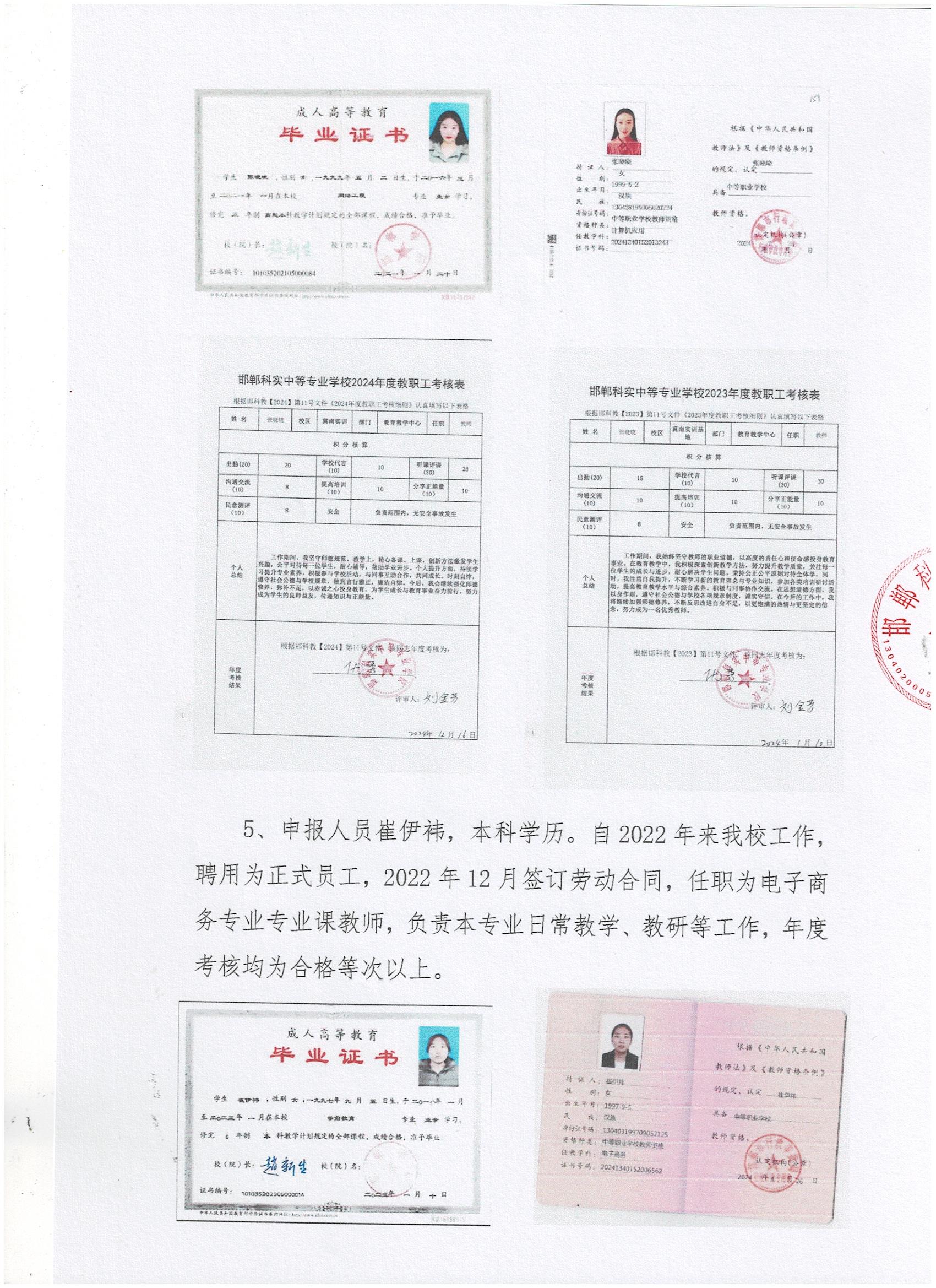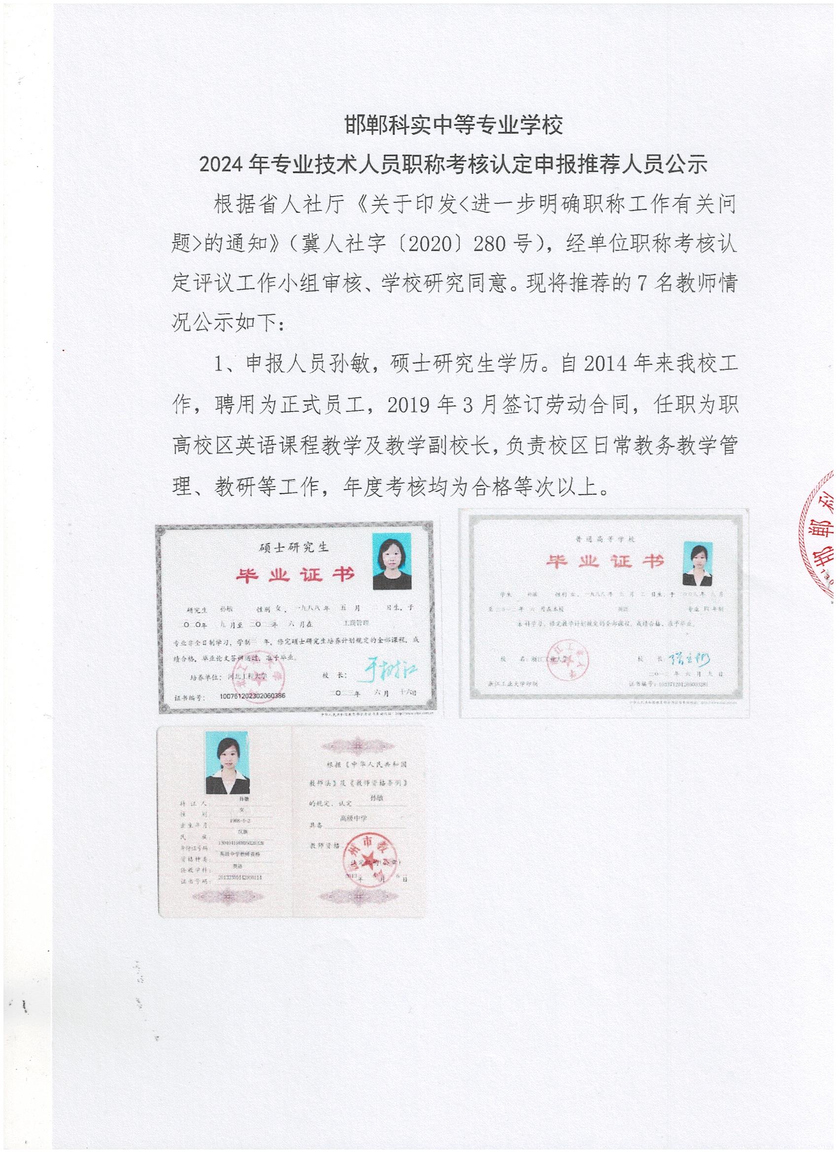 邯鄲科實中等專業(yè)學校2024年專業(yè)技術人員職稱考核認定申報推薦人員公示