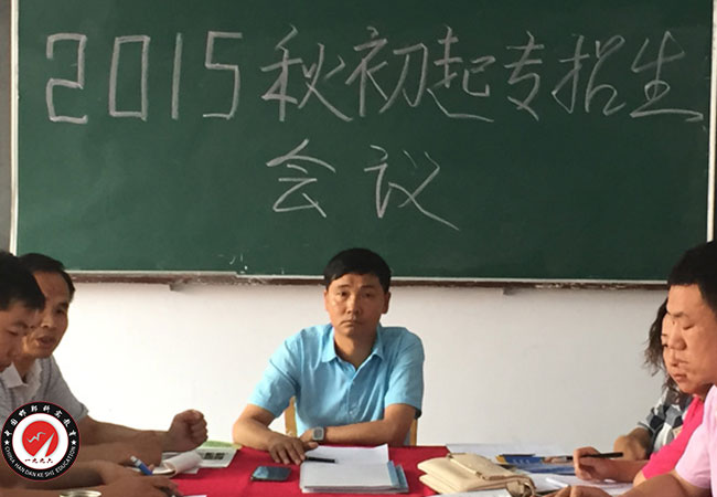 張校長主持會議,韓捷宣讀邯科教【2015】第44號《2015秋季初起專招生工作指導意見》文件;劉金芳安排部署招生工作;王建福安排部署安全、教學等工作;胡虹安排部署衛(wèi)生、后勤等工作;最后張校長做了重要講話:一、高度重視,樹立危機意識;二、高度服從;三、要精心組織,周密部署,創(chuàng)新方法,做好2015年秋季招生工作;四、責任到人,落實任務(wù)。最后張校長祝愿2015年秋招生工作順利進行,圓滿完成任務(wù)。 (通訊員:張獻英)