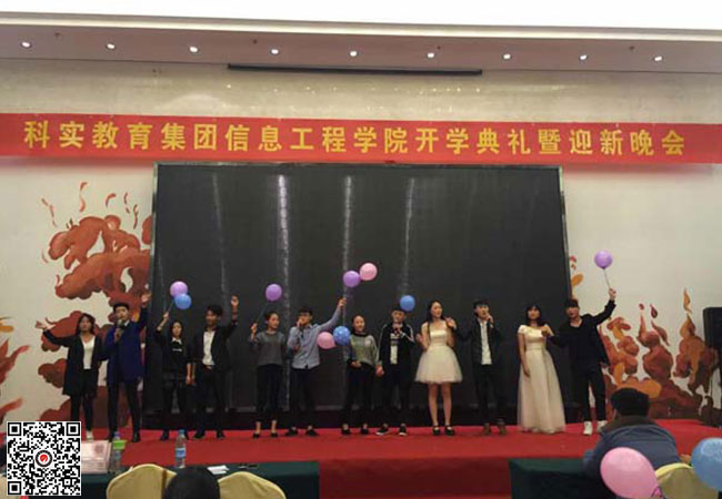 2015年10月30日下午,信息工程學院開學典禮暨迎新晚會在金龍大酒店宴會廳舉行。校長張璽博士、副校長韓捷、項目推廣中心校長袁立波、信息工程學院副院長王艷和信息工程學院全體師生出席了典禮儀式。