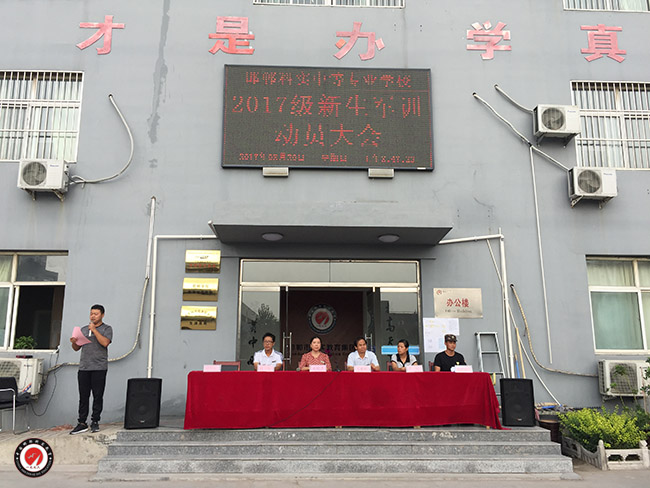 軍歌嘹亮,紅旗飄飄。2017年8月20日上午8時30分,中專校區(qū)2017級新生軍訓(xùn)動員大會在行政樓前隆重舉行,副校長梁曉燕、校區(qū)教育教學(xué)管理中心副校長王建福、趙亮亮、教育系主任都娟娟、藝術(shù)系副主任趙偉、勇振軍訓(xùn)大隊隊長王恒亞等領(lǐng)導(dǎo)出席,一年級班主任、軍訓(xùn)教官及全體新生參加了動員大會。