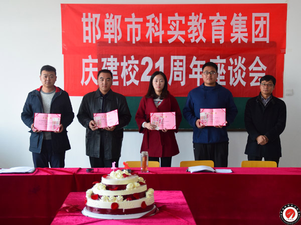 韓校長主持座談會,四位教職工代表分別回憶了集團(tuán)“艱苦創(chuàng)業(yè)歲月”、“輝煌大學(xué)生培訓(xùn)”、“職業(yè)教育全市榜首”、“探索高等教育在路上”等發(fā)展階段,每一段歷程都警示我們要不忘初心,砥礪前行;張校長做重要講話,感謝各位老師的一路風(fēng)雨陪伴與無私付出,并明確集團(tuán)今后的發(fā)展方向與目標(biāo),為建百年名校提出三點(diǎn)要求:一、養(yǎng)成十個(gè)習(xí)慣;二、分類培養(yǎng):三、專業(yè)兼公司模式。梁校長宣讀了各項(xiàng)優(yōu)秀、先進(jìn)人個(gè)、集體的表彰文件,張校長為獲獎教師頒獎;教師們?yōu)榭茖?shí)21周年慶生,張校長親自切開蛋糕并分發(fā),與教師們共享這一美好時(shí)刻。