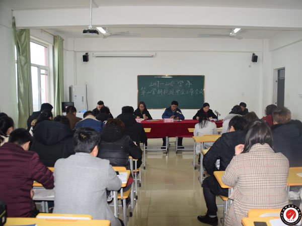 副校長梁曉燕主持會議,副校長劉金芳宣讀科政【2018】第8號《關于調整2018年度安全工作領導小組的決定》 ;教育教學管理中心副校長趙亮亮帶領學習學校安全相關文件。