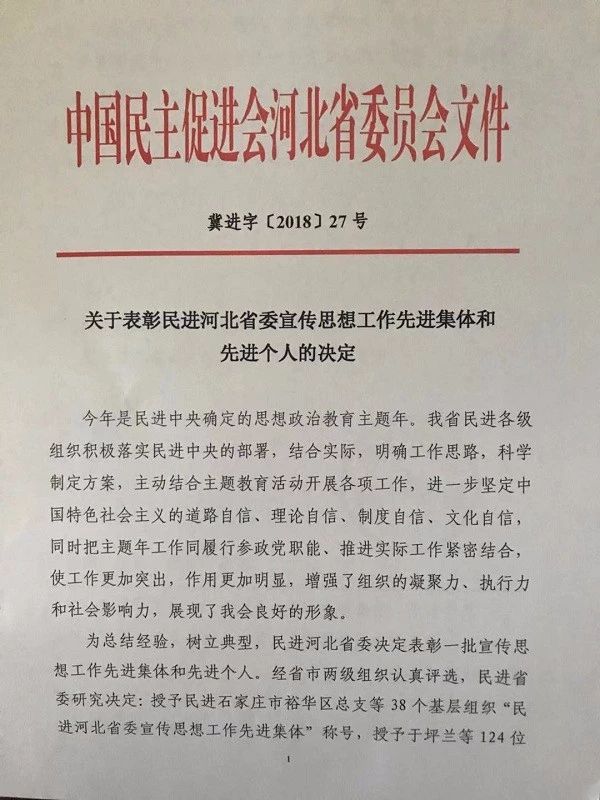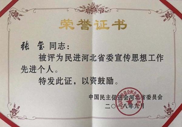 我校校長張璽博士,自2008年加入中國民主促進(jìn)會(huì)以來,始終堅(jiān)持學(xué)習(xí)黨中央各項(xiàng)理論、論述、思想,特別十九大以來,深刻領(lǐng)會(huì)習(xí)近平新時(shí)代中國特色社會(huì)主義思想,認(rèn)真落實(shí)民進(jìn)省委、市委提出的各項(xiàng)工作任務(wù),本著服務(wù)社會(huì)、服務(wù)人民,為家長排憂、為學(xué)生幸福,進(jìn)行教育教學(xué)改革創(chuàng)新,引領(lǐng)學(xué)生養(yǎng)成“十個(gè)好習(xí)慣”,實(shí)施分類培養(yǎng),全身心投入到職業(yè)教育事業(yè)中,贏得了社會(huì)各界的一致好評(píng),2018年10月,又一次榮獲民進(jìn)河北省委頒發(fā)的“民進(jìn)河北省委宣傳思想工作先進(jìn)個(gè)人”榮譽(yù)稱號(hào)。