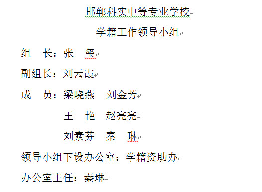 學(xué)籍工作領(lǐng)導(dǎo)小組
