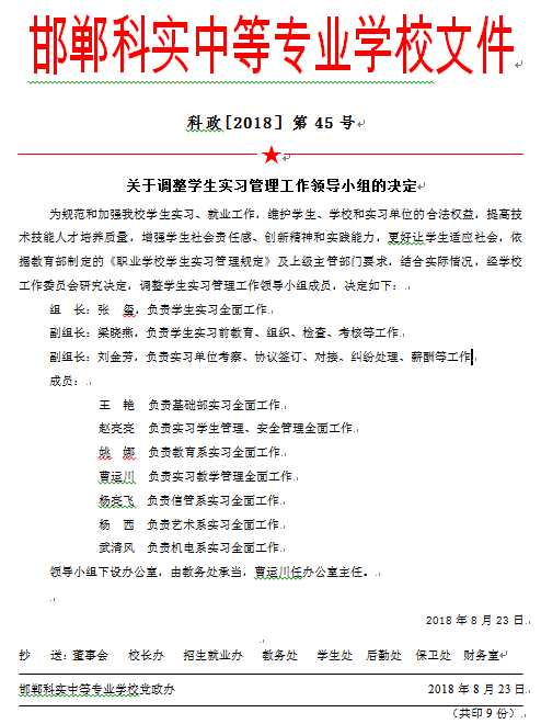 關(guān)于調(diào)整學(xué)生實習(xí)管理工作領(lǐng)導(dǎo)小組的決定