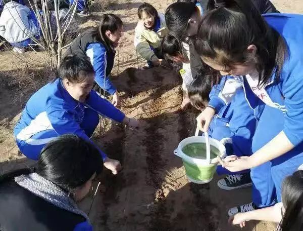本次活動分兩個場地,兩項(xiàng)活動,即植樹和種菜。同學(xué)們分工合作,你挖坑來我扶苗,你澆水來我播種,親手栽培,用心播種,在科實(shí)的校園里撒下希望的種子,讓綠色的校園在春天里更加生機(jī)。