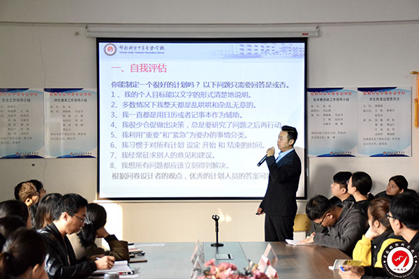 本次培訓(xùn)以落實(shí)校長張璽博士提出的養(yǎng)成“十個(gè)好習(xí)慣”之一“凡事計(jì)劃”為主題。主題培訓(xùn)由教育教學(xué)中心副校長趙亮亮主講,趙校長就“凡事計(jì)劃”主題,對(duì):1、為什么要計(jì)劃?2、計(jì)劃是什么?3、怎么定計(jì)劃?4、怎么執(zhí)行計(jì)劃?進(jìn)行了詳細(xì)的講解,并為各個(gè)問題一一解答。對(duì)于計(jì)劃總結(jié)為:PDCA。即:計(jì)劃+執(zhí)行+檢查+總結(jié),從而更加有效的提高所有教職工工作的效率。