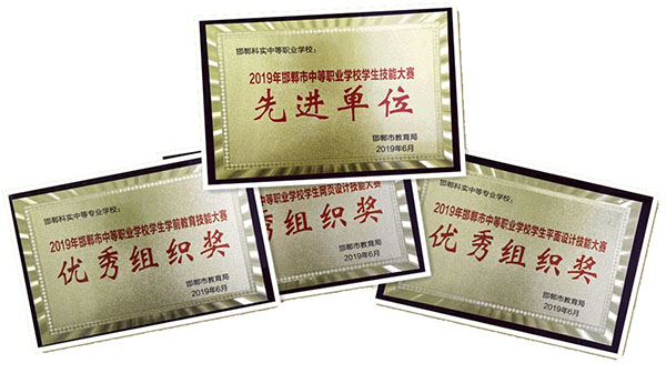2019年9月,2019年邯鄲市中等專業(yè)學校技能大賽總結會上,學前教育、網(wǎng)頁設計、網(wǎng)絡布線、信息化辦公,學生、教師、團隊累計榮獲36個獎項,其中多項成績名列前茅,邯鄲市教育局授予我校“2019年邯鄲市中等專業(yè)學校技能大賽”先進單位、優(yōu)秀組織獎。