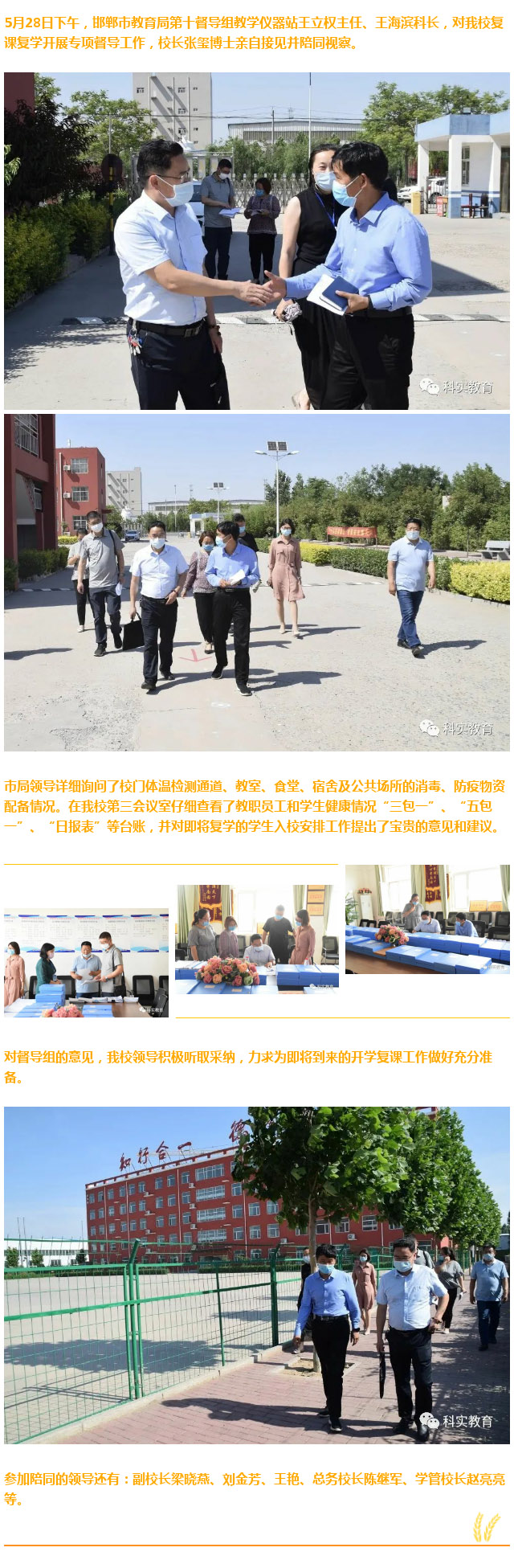 市教育局督導(dǎo)組王立權(quán)主任、王海濱科長到我校指導(dǎo)開學(xué)復(fù)課工作