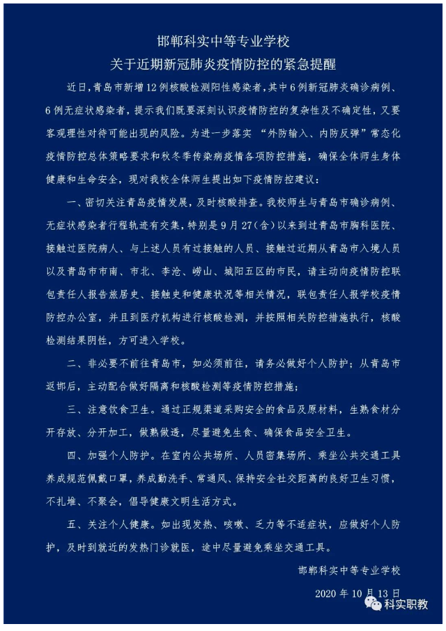 關(guān)于近期新冠肺炎疫情防控的緊急提醒