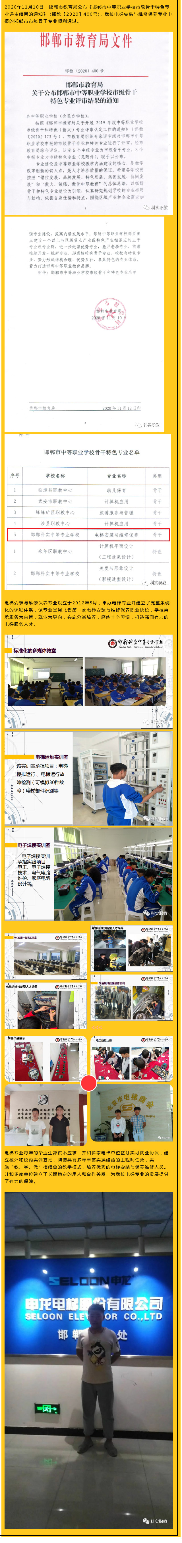 我校電梯安裝與維修保養(yǎng)專業(yè)入圍邯鄲市市級骨干專業(yè)