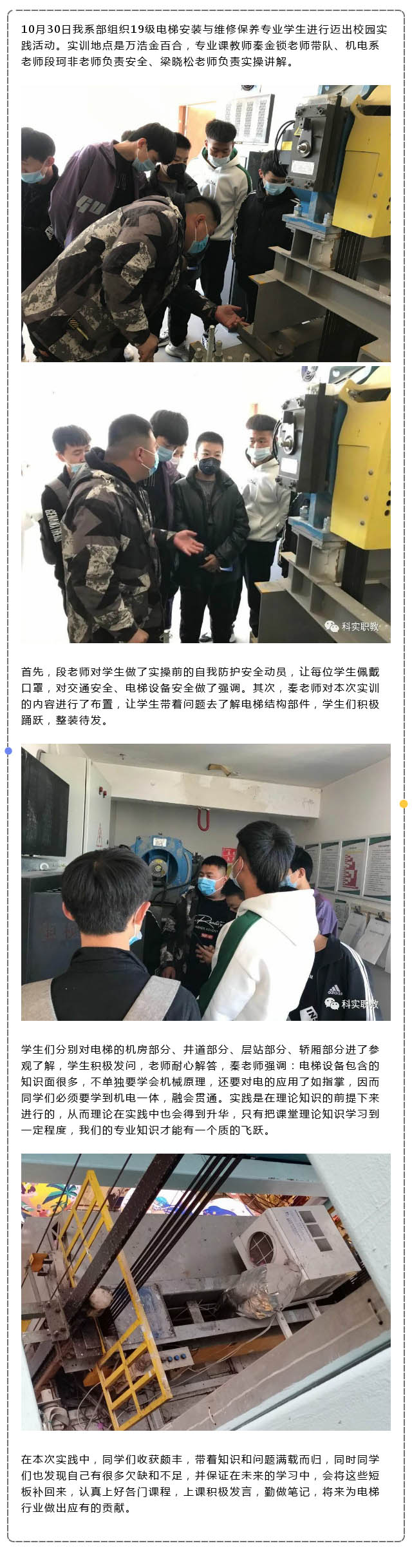 我校電梯安裝與維修保養(yǎng)專業(yè)組織校外實訓