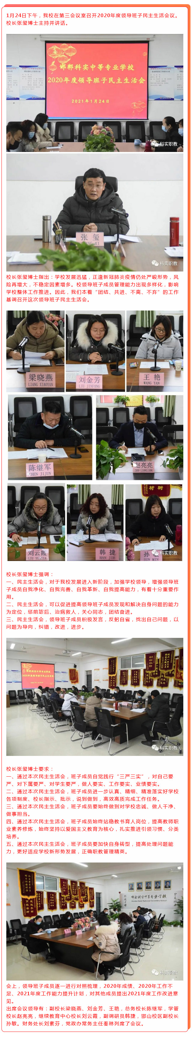 我校召開2020年度領(lǐng)導班子民主生活會議