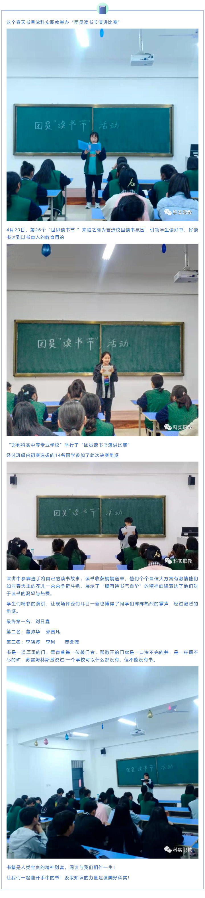 我校舉辦團(tuán)員讀書節(jié)演講比賽