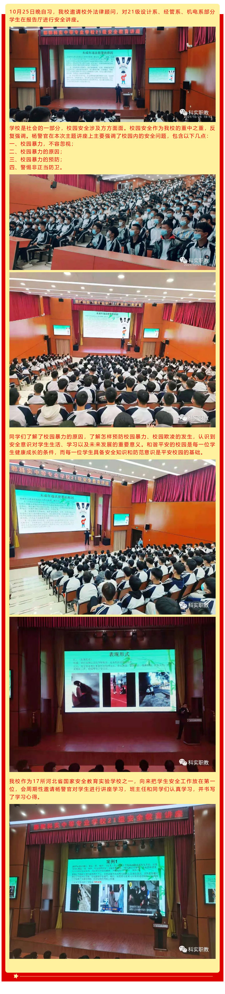 我校組織21級機電系新生安全講座