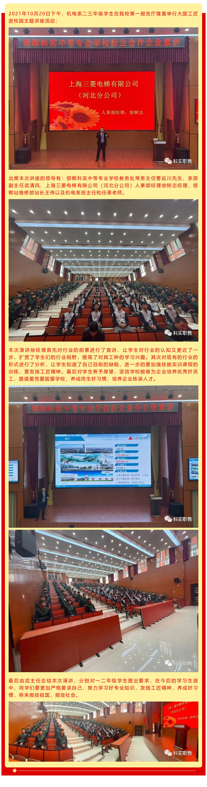 大國工匠進(jìn)校園主題講座活動——機(jī)電系