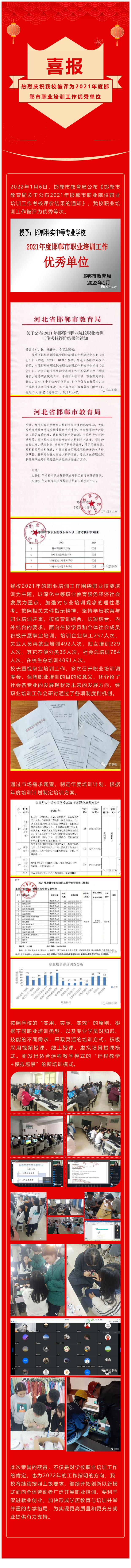喜訊:我校職業(yè)培訓(xùn)工作被邯鄲市教育局評為優(yōu)秀等次