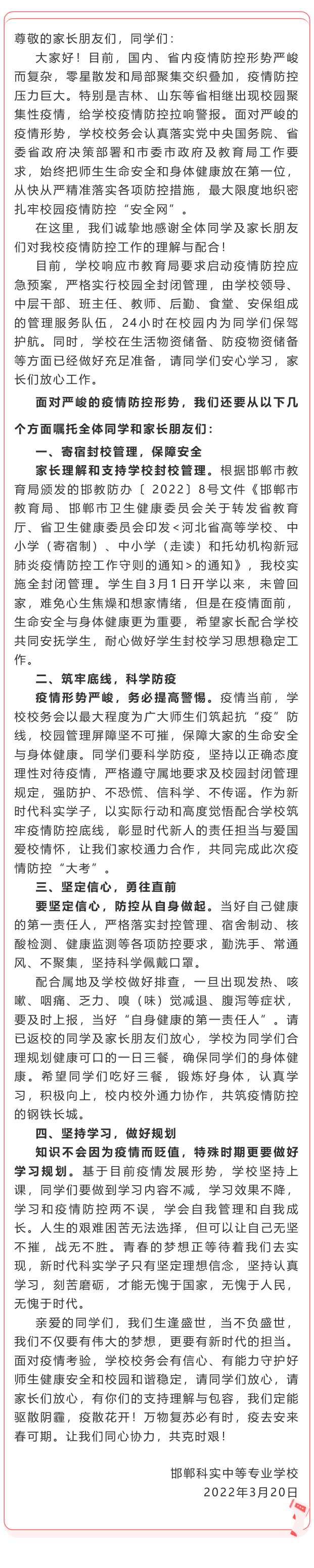疫情期間致學(xué)生和家長(zhǎng)的一封信
